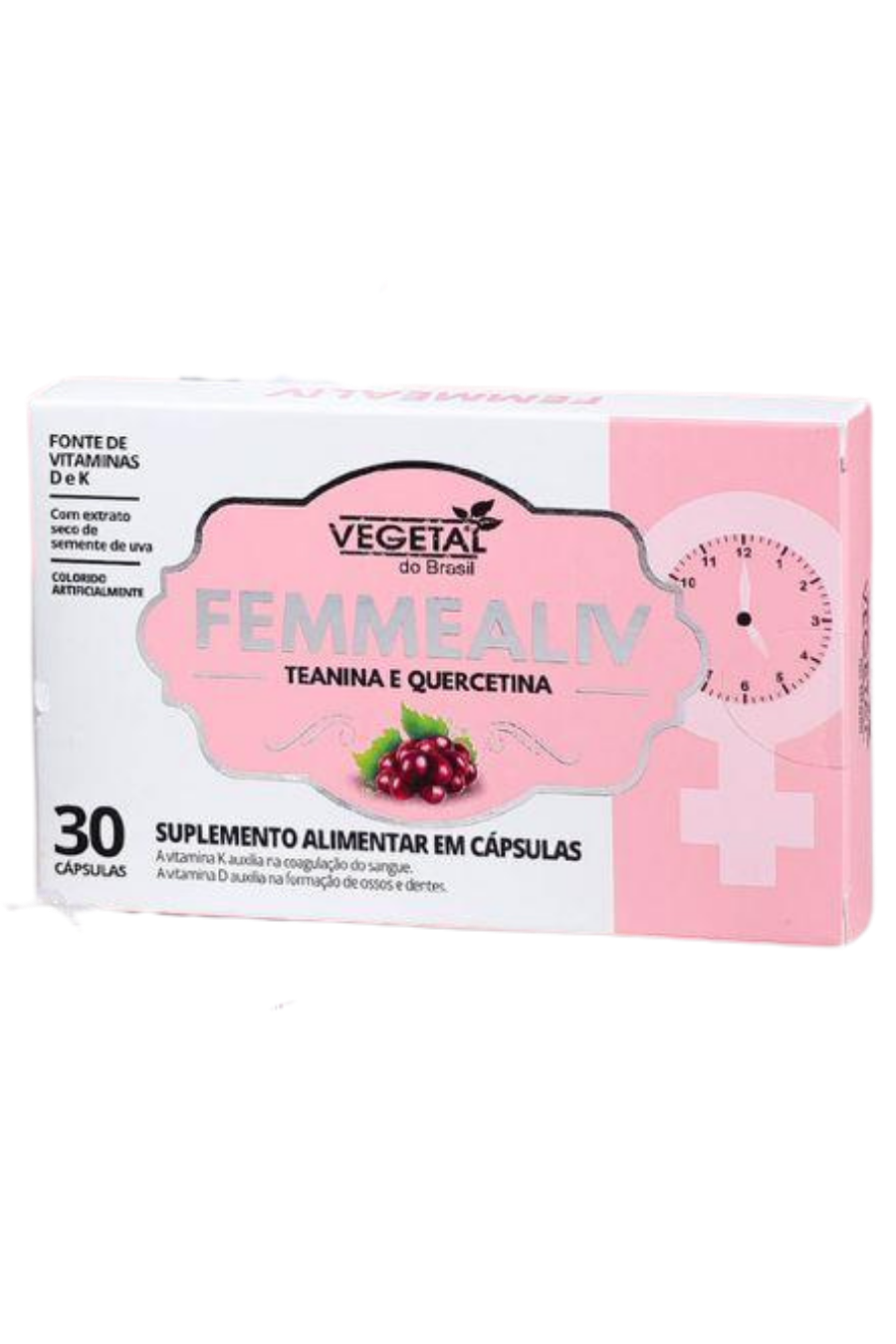 ALIVFEMME é um suplemento formulado com ativos cuidadosamente selecionados para oferecer suporte ao bem-estar feminino. Com extrato de semente de uva (Enovita®), teanina, quercetina, vitamina D e vitamina K, sua composição favorece a saúde óssea, muscular, imunológica e circulatória, contribuindo para o equilíbrio do corpo da mulher.