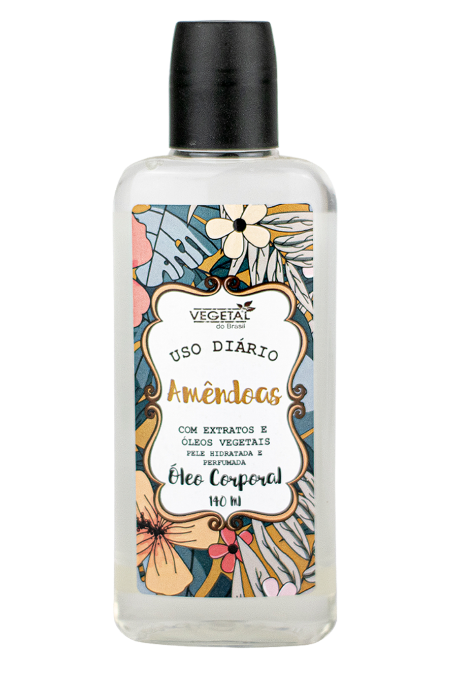 O Óleo corporal de Amêndoas da Vegetal do Brasil hidrata e perfuma a pele.