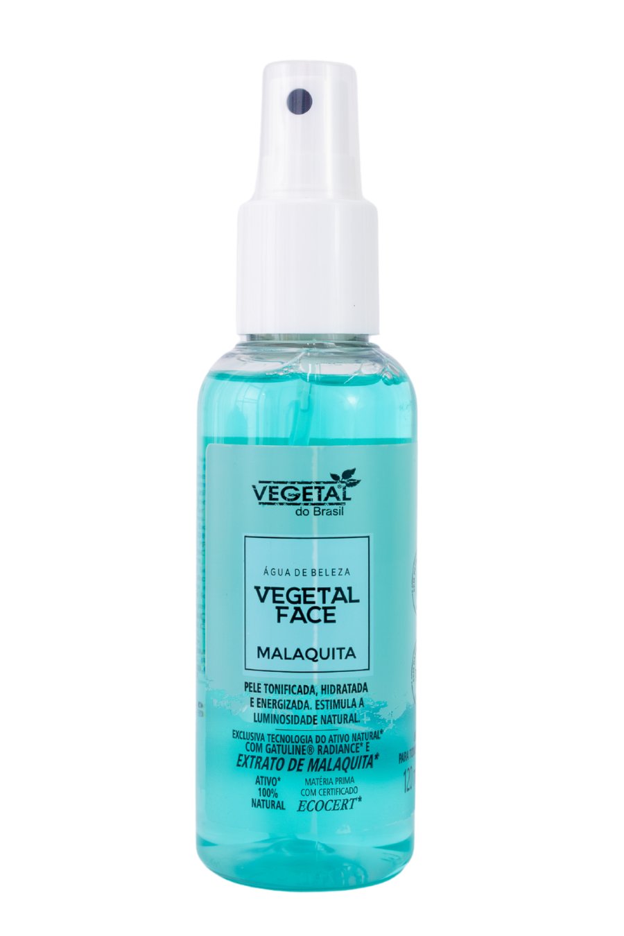 A Água de Beleza Malaquita Vegetal Face é uma bruma facial multifuncional com ação hidratante, tonificante e energizante. Enriquecida com Extrato de Malaquita e Gatuline® Radiance, promove o equilíbrio da pele e realça sua luminosidade natural. Ideal para todos os tipos de pele, pode ser usada como tônico diário ou fixador de maquiagem.