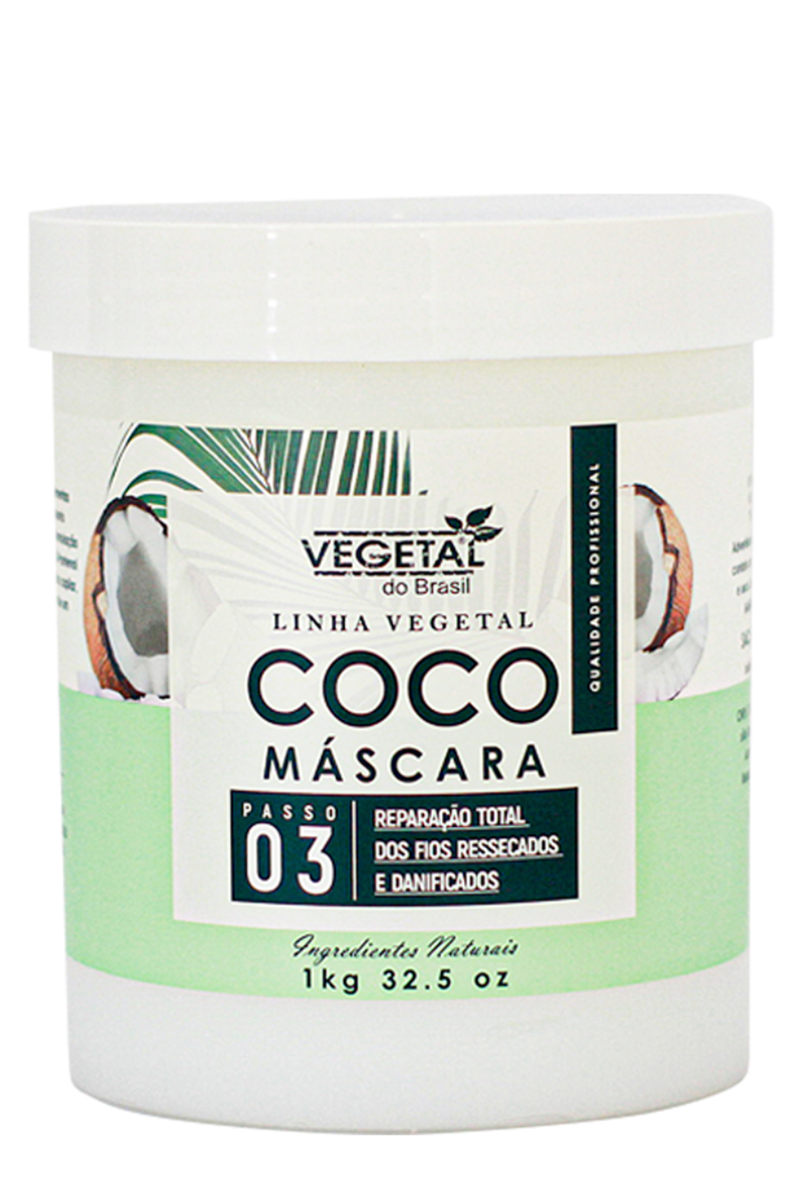 Máscara capilar. Vegetal do Brasil Coco é indicada para reparação total dos fios ressecados e danificados, ideal para quem busca nutrição e hidratação profunda.